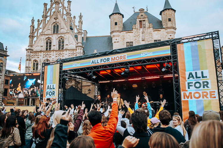 Op donderdag 2 oktober om 16u00 zal de Grote Markt van Mechelen meer dan 2.500 studenten en personeelsleden doen dansen. In het hart van de stad vindt dan All for More voor de tweede keer plaats, een festival voor en door studenten. Lieselotte Heymans, diensthoofd Studentenvoorzieningen, vindt het academiejaar starten met een feest, een must: